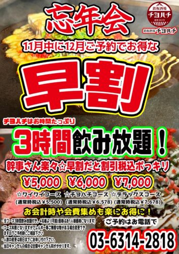 鉄板酒場チヨハチです。新高円寺にて営業開始!もんじゃにお好み焼きやステーキ、アヒージョまで