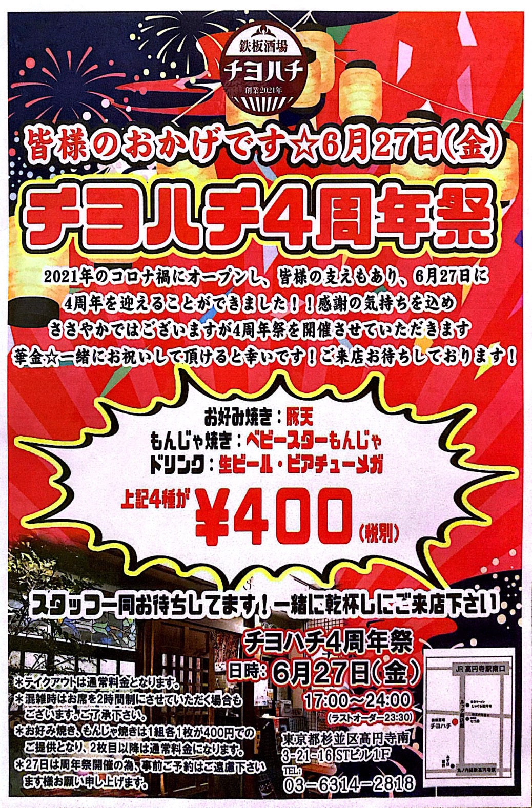 皆様のおかげです「チヨハチ4周年祭」6/27(金) 開催!
